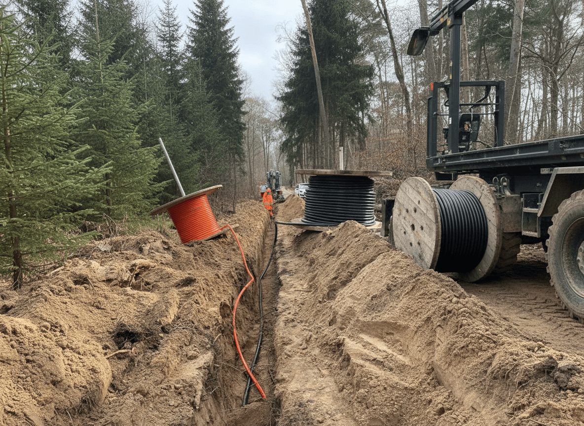Verlegung von Ver- und Entsorgungsleitungen (Wasser, Strom, Gas, Telekommunikation).